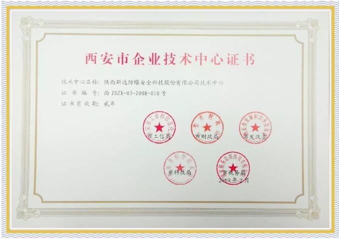 斯達防爆榮獲西安市企業(yè)技術(shù)中心認定