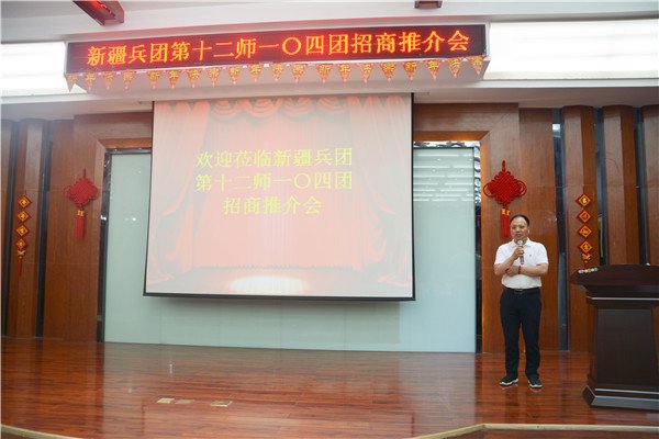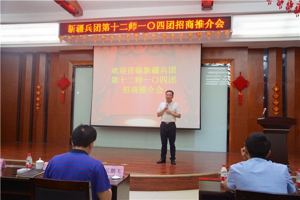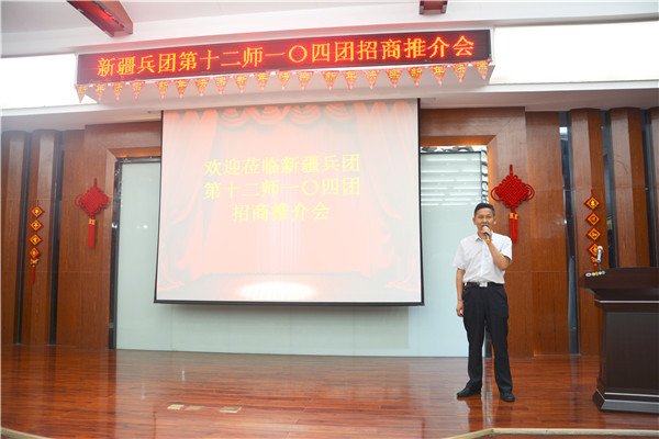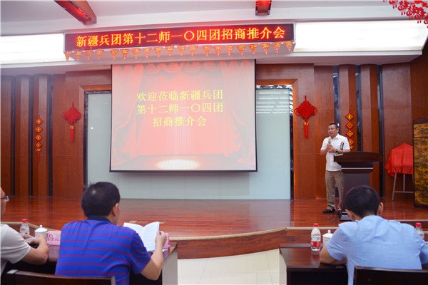 ? ? ? ?6月23日上午,新疆生產(chǎn)建設兵團第十二師一〇四團招商推介會在斯達集團總部四樓多功能廳舉行。本次推介會由陜西新疆商會、斯達集團共同協(xié)辦,50余位政企嘉賓應邀出席。